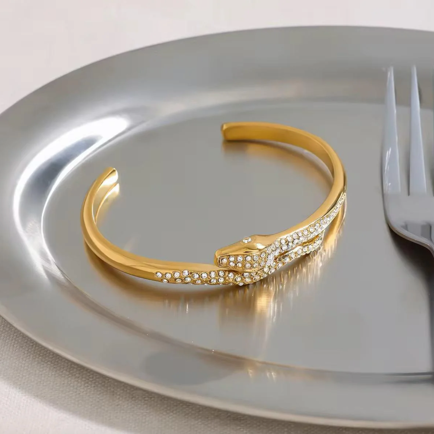 Eye of Gold – Le bracelet serpent avec un zircon scintillant