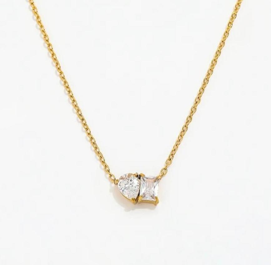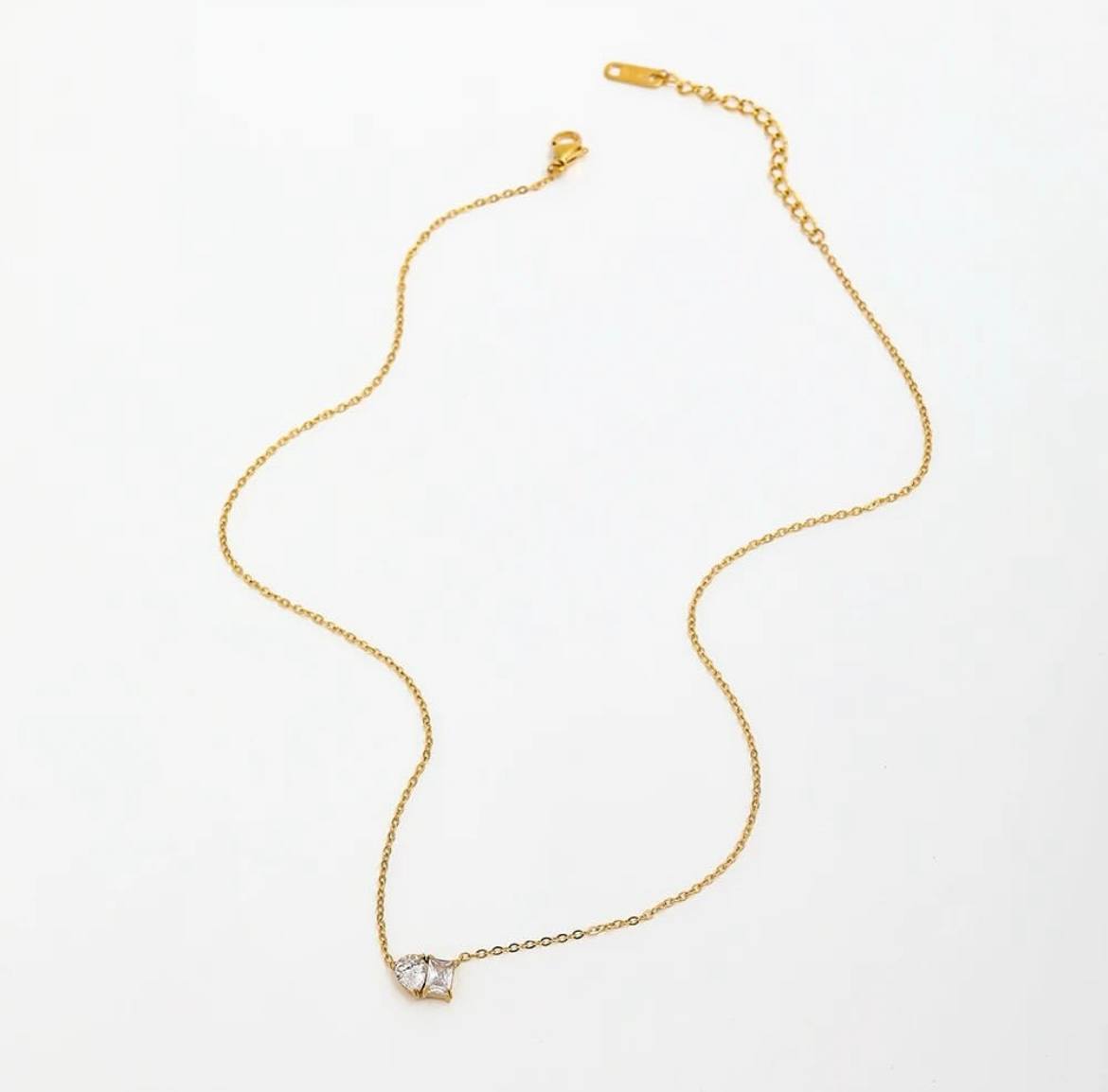 Collier Felicity : Délicat et raffiné, le collier Felicity se distingue par ses deux pierres scintillantes, une ronde et une carrée, qui ajoutent une touche de glamour subtile. Idéal pour rehausser n'importe quelle tenue, ce bijou est un équilibre parfait entre simplicité et sophistication.
